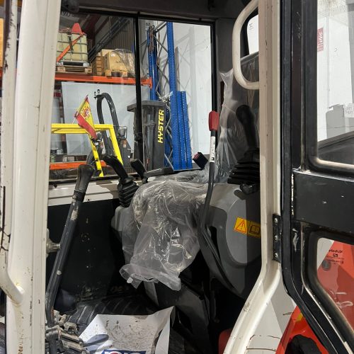 Miniexcavadora Kubota U27-4 .Cabina cerrada. Giro cero. Orugas goma. Con 3 cazos y enganche rápido Klac. 1 año de garantía